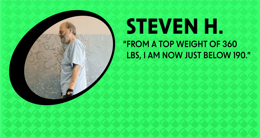At 360 lbs, Steven struggled to complete 3 minutes on the elliptical without difficulty.